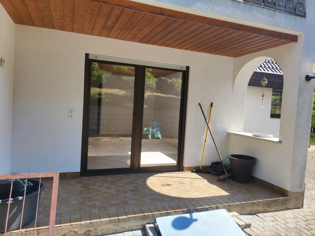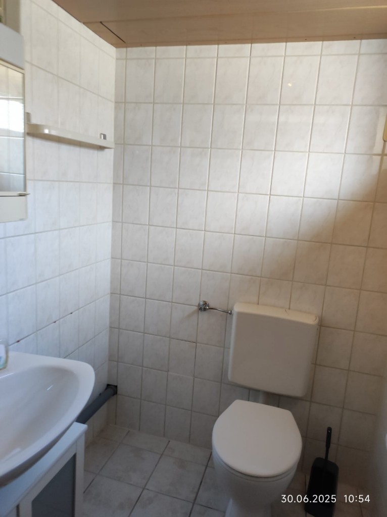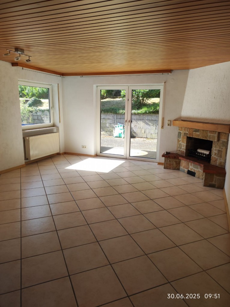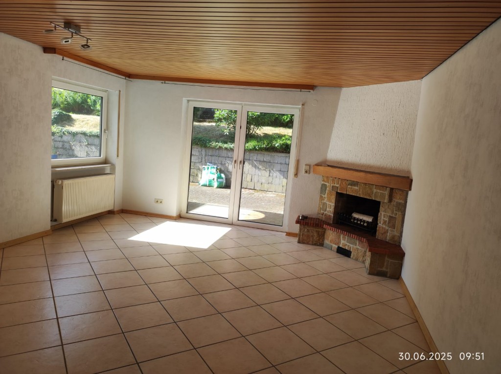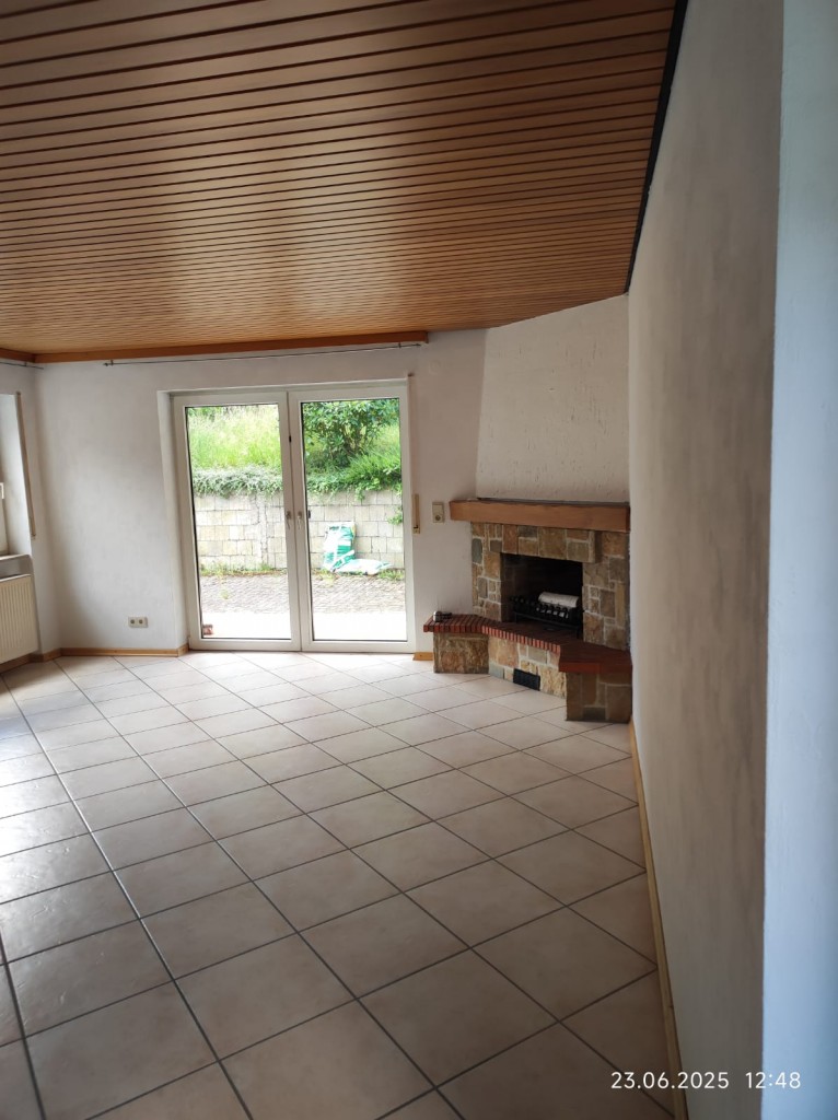 Über das Wohnzimmer, kann die kleine Fliesenterrasse, sowie die Gartenterrasse betreten werden. Der offene Kamin bildet den Mittelpunkt des Raumes. Das Badezimmer verfügt über eine Badewanne, eine Dusche und eine zusätzliche Gasheizung, die alle zwei Jahre geprüft wird.